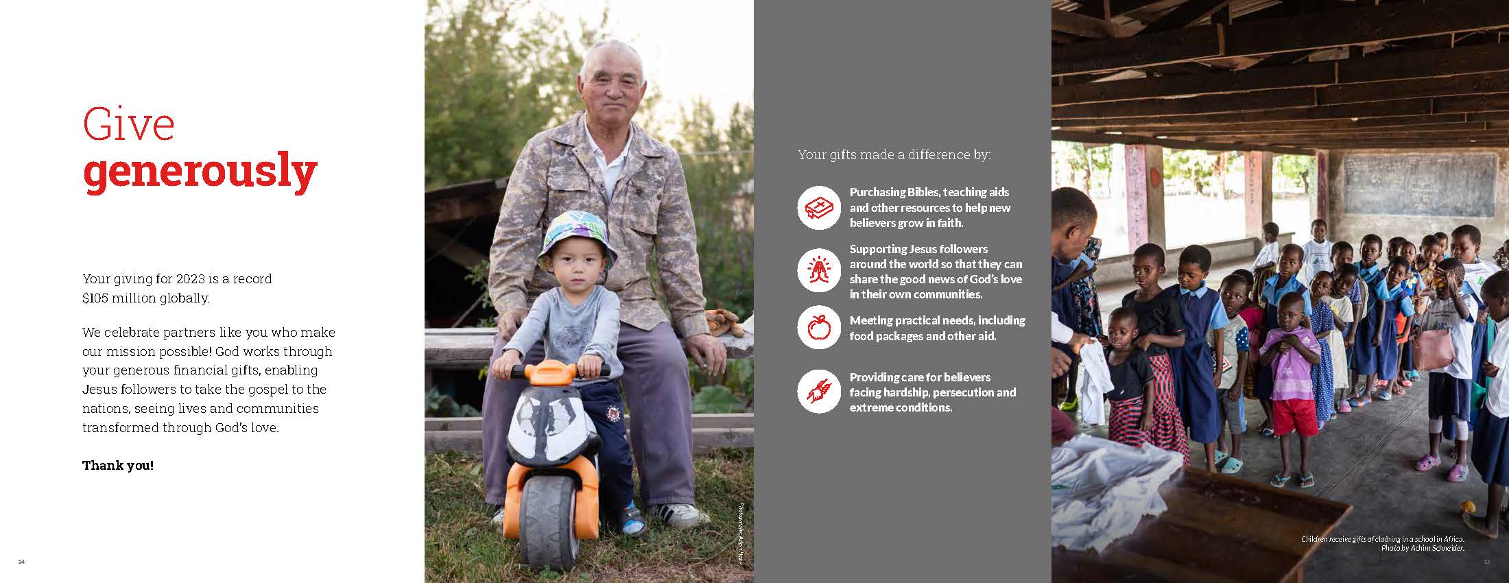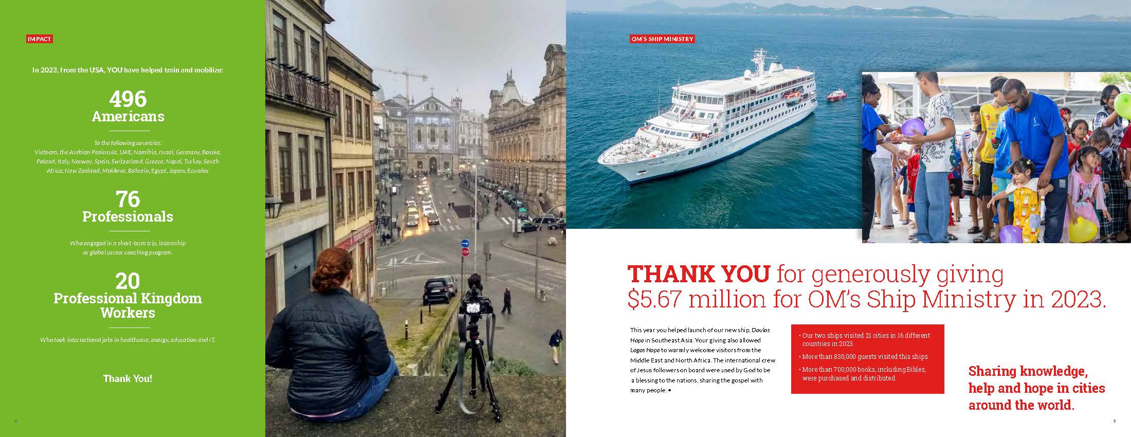 Every year, I have designed an annual report for Operation Mobilization USA. Here is the report from 2023.